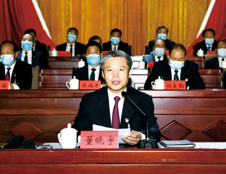 圖為董曉宇同志發(fā)表講話。本網(wǎng)記者 陳琦嘉 王立群 攝