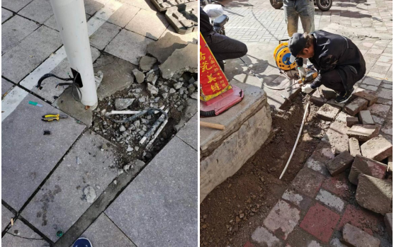 確保安全生產(chǎn)不出事故是提供優(yōu)質(zhì)服務的前提,近日,停車場公司在安全生產(chǎn)排查中發(fā)現(xiàn)熱河大廈停車場用電線路途徑的路面有破損、坍塌情況,我公司領導高度重視,迅速反應,立即成立搶修小組,安排專業(yè)人員查找線路,經(jīng)排查發(fā)現(xiàn)地埋線管已經(jīng)多處出現(xiàn)破損情況,電線裸露將存在極大的安全隱患,為了避免觸電事故的發(fā)生,需要立即進行更換管線和路面修復工作。在復雜的環(huán)境下,我公司工作人員克服了種種困難,挖溝、下管、布線、接電、回填、鋪磚、抹灰,在不影響停車場正常運營的情況下,在最短時間內(nèi)完成了熱河大廈停車場長度100余米的地埋管線更換和路面恢復工作,充分展現(xiàn)了停車場公司團隊高效的工作效率和盡職盡責的敬業(yè)精神。
